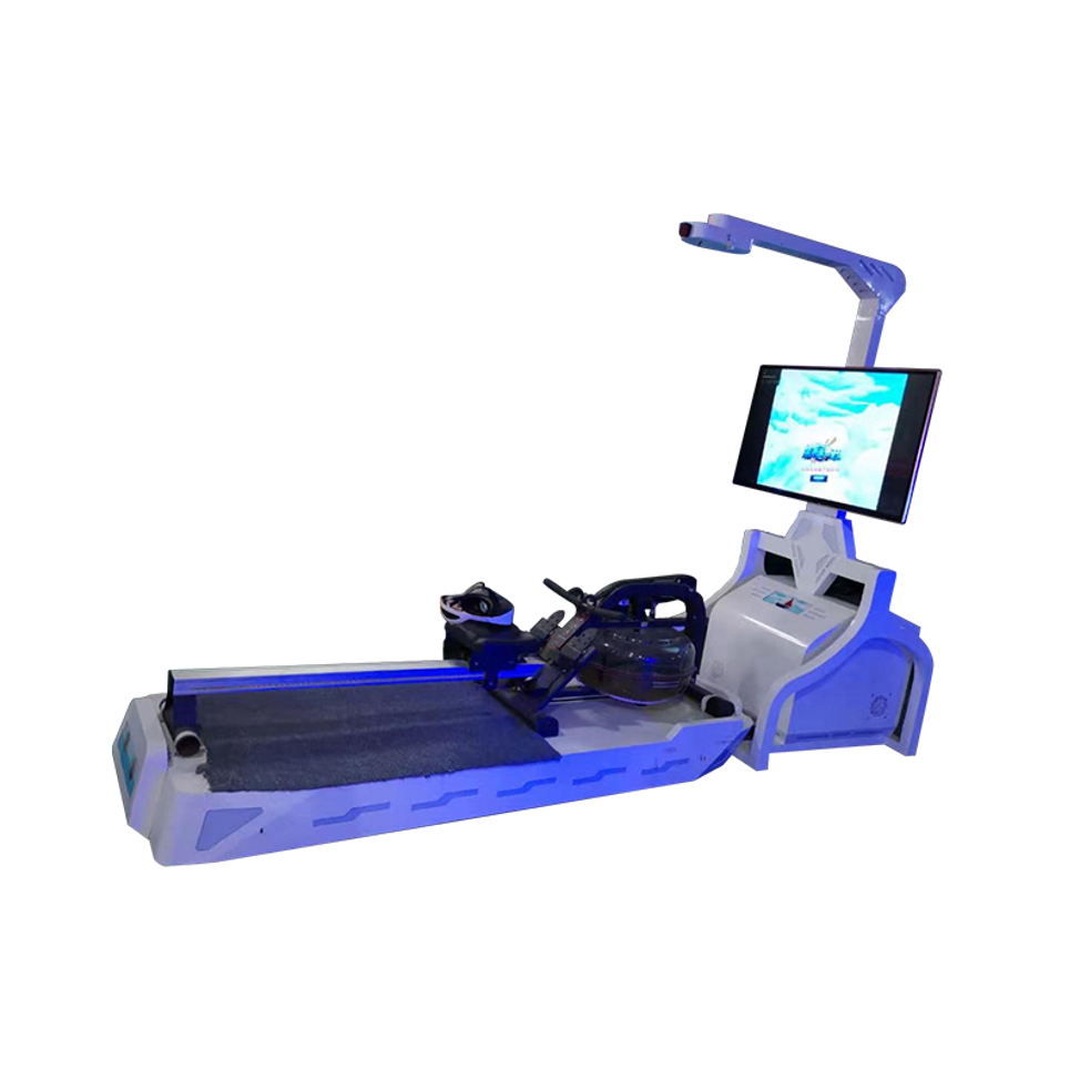 Authentic rowing machine combined with immersive VR waterway adventures